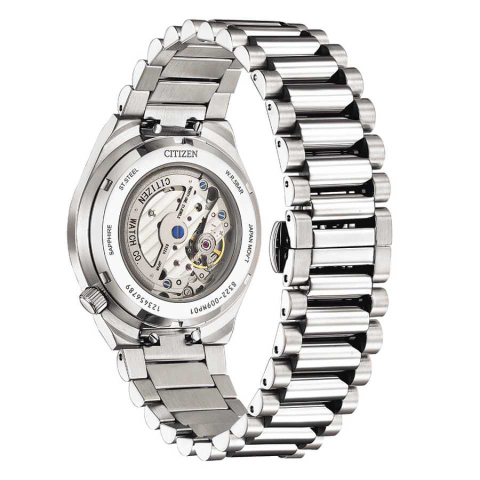 Orologio da uomo Citizen, modello Tsuyosa Automatico Piccoli Secondi NK5010-51L alimentato da un movimento meccanico a carica automatica calibro 8322 con riserva di carica 60 ore. L'orologio si presenta con una cassa da 40 mm in acciaio, fondo con oblò trasparente e movimento a vista. Vetro zaffiro, quadrante blu con indici e lancette luminescenti e piccoli secondi a ore 6. Impermeabile fino a 5 bar.