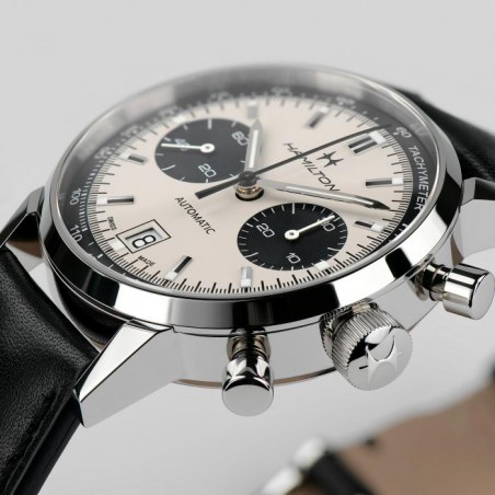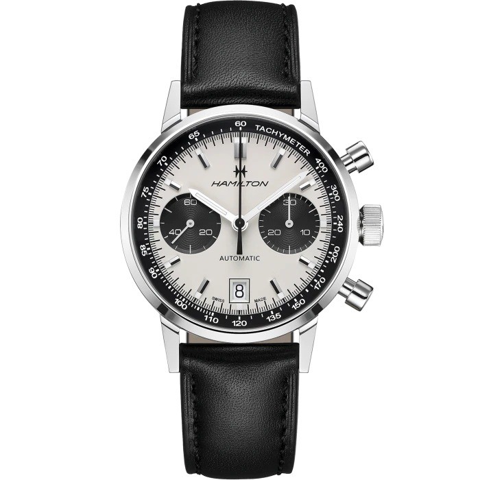 L’Intra-Matic Auto Chrono di Hamilton è una rivisitazione in chiave moderna di una creazione iconica del 1968 per un look allo stesso tempo classico e sportivo. Combinando un autentico stile anni ‘60 con l’esclusivo movimento automatico H-31, lo speciale quadrante effetto “panda” attirerà sicuramente gli sguardi di tutti.