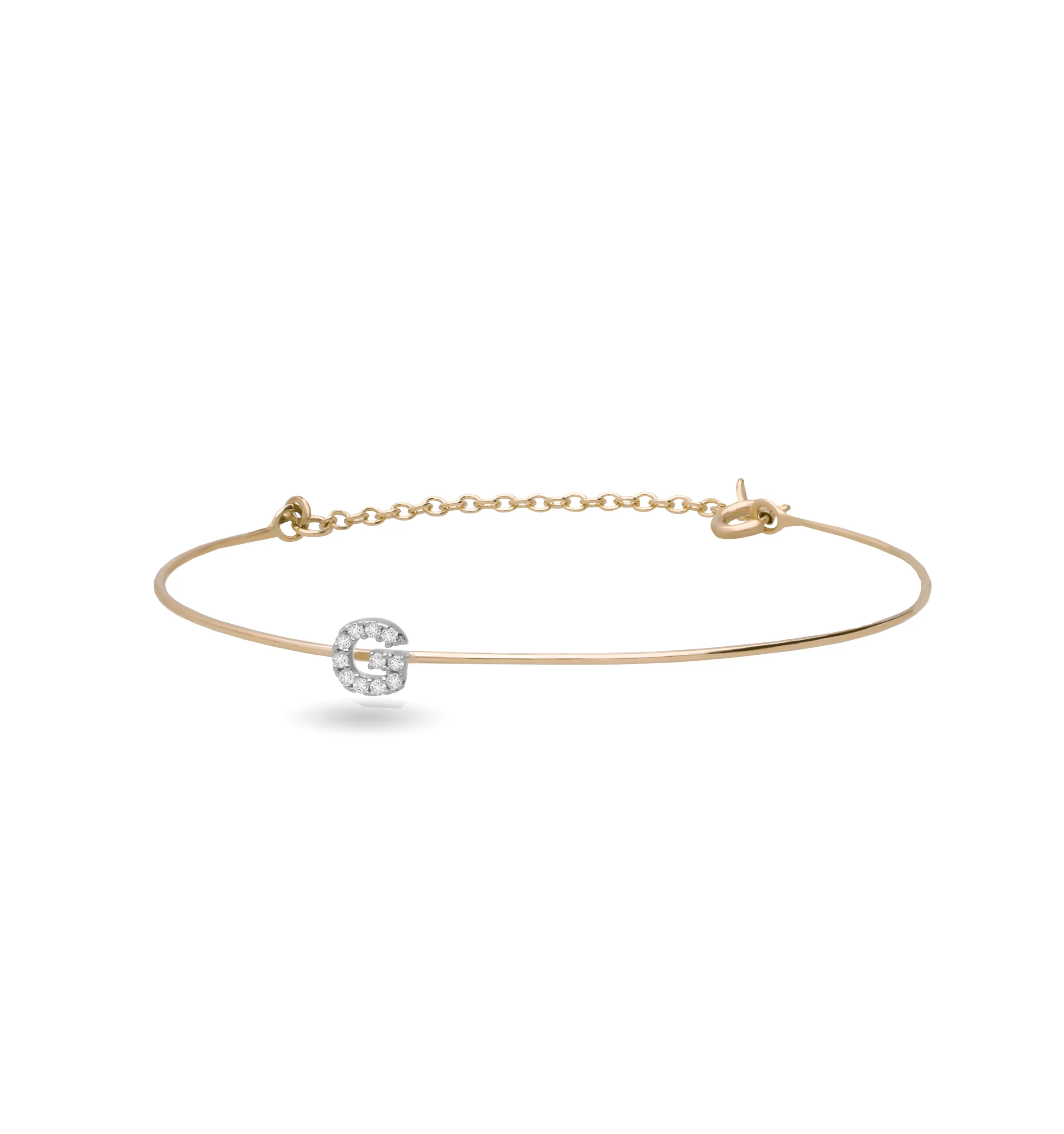 FILO D'AMORE Bracciale Cupido in Oro Giallo 9kt con Lettera "G" con Diamanti BR255GBBT-S