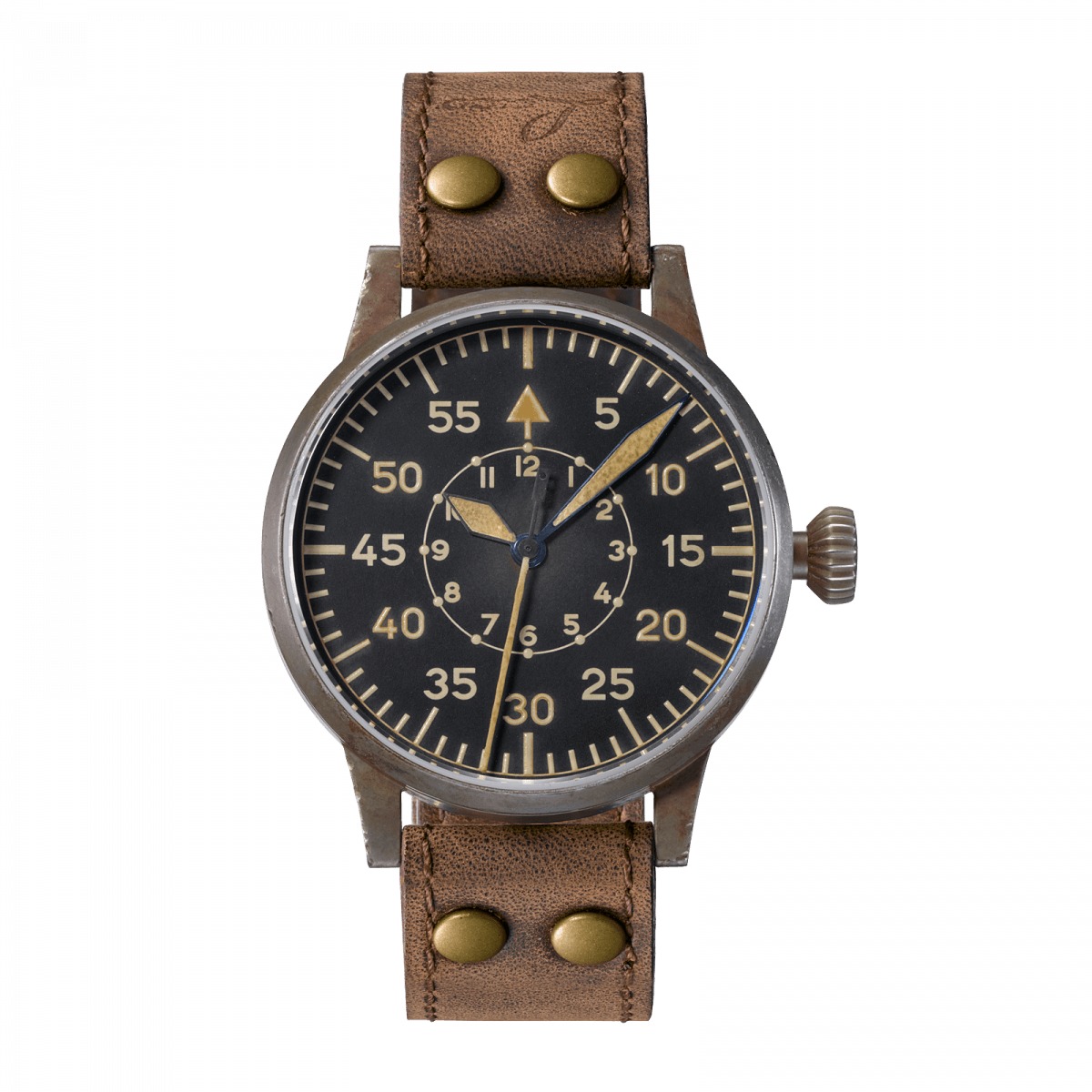 Laco ha sviluppato un metodo unico per ottenere questo aspetto speciale, creando una patina naturale sugli orologi. Graffi, graffi, scolorimento e usura possono essere riprodotti per apparire come sui vecchi originali. Tutti i componenti - cassa, quadrante, lancette o cinturino - sono invecchiati individualmente ea mano, utilizzando una procedura ad alta intensità di lavoro senza ausili meccanici, quindi l'invecchiamento sembra assolutamente autentico e nessuno è uguale all'altro. Ciò conferisce agli orologi il fascino di un segnatempo storico, rendendo ognuno di essi completamente unico, individuale e distintivo come il suo proprietario!