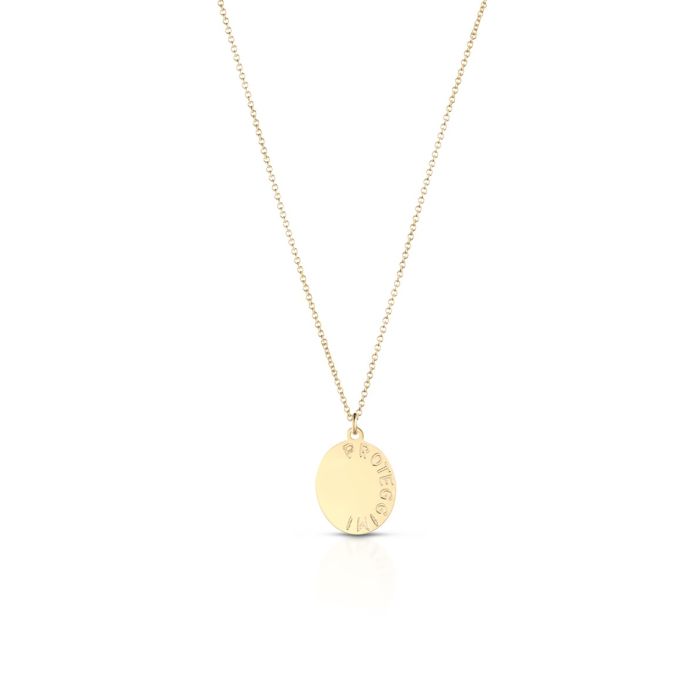 Ciondolo Proteggimi in oro giallo 9kt con Madonnina e cuore inciso