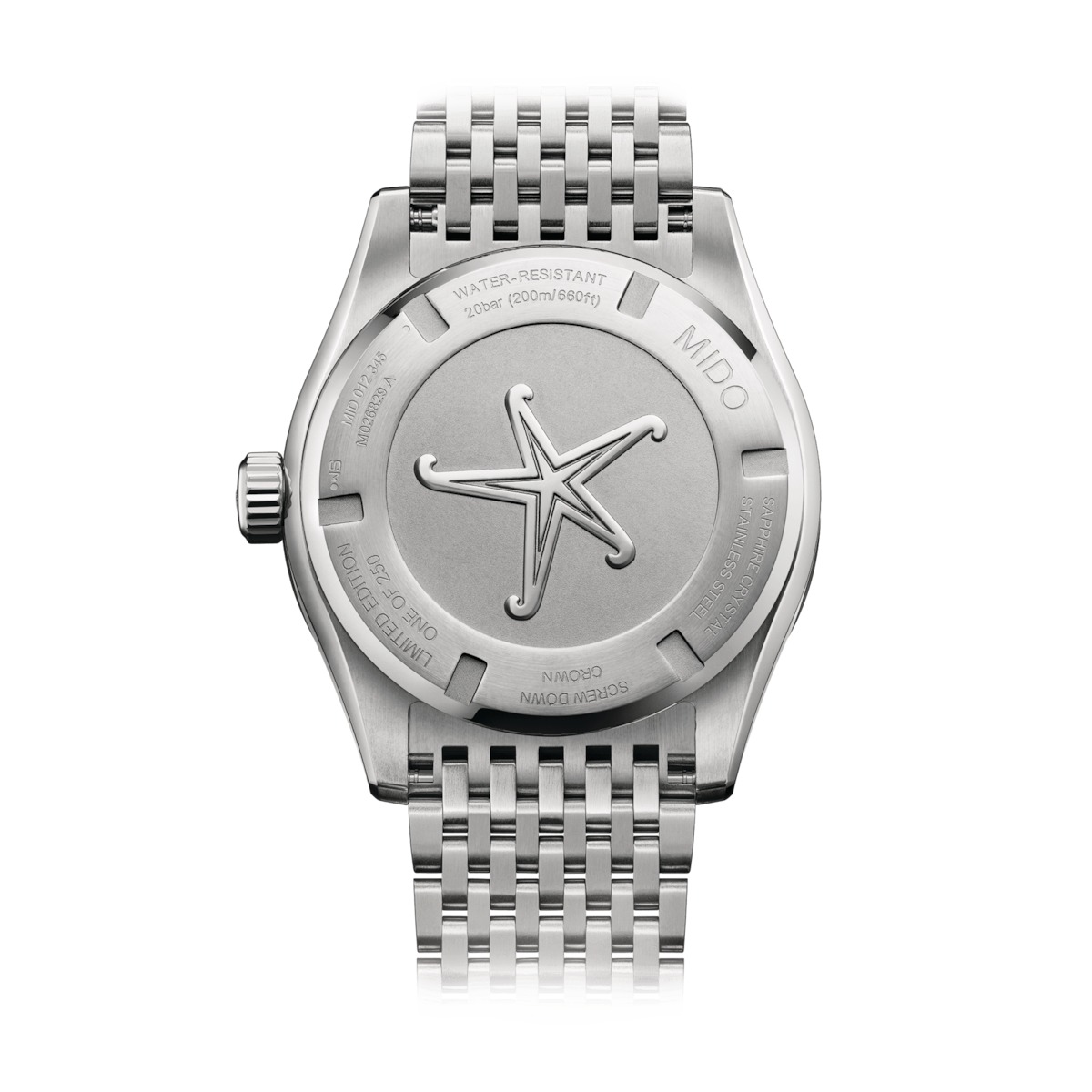 MIDO arricchisce la sua collezione Ocean Star con una versione dotata della funzione GMT molto pratica. Visualizza chiaramente l'ora in due diversi fusi orari: l'ora di casa e l'ora locale. Sul retro dell'orologio - dotato di calibro 80, che offre una riserva di carica fino a 80 ore - MIDO ha inciso le indicazioni del fuso orario. La funzione GMT estremamente facile da usare offre il doppio della libertà per coloro che si trovano nel bel mezzo dell'oceano o di un'avventura adrenalinica.