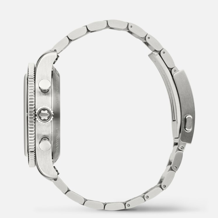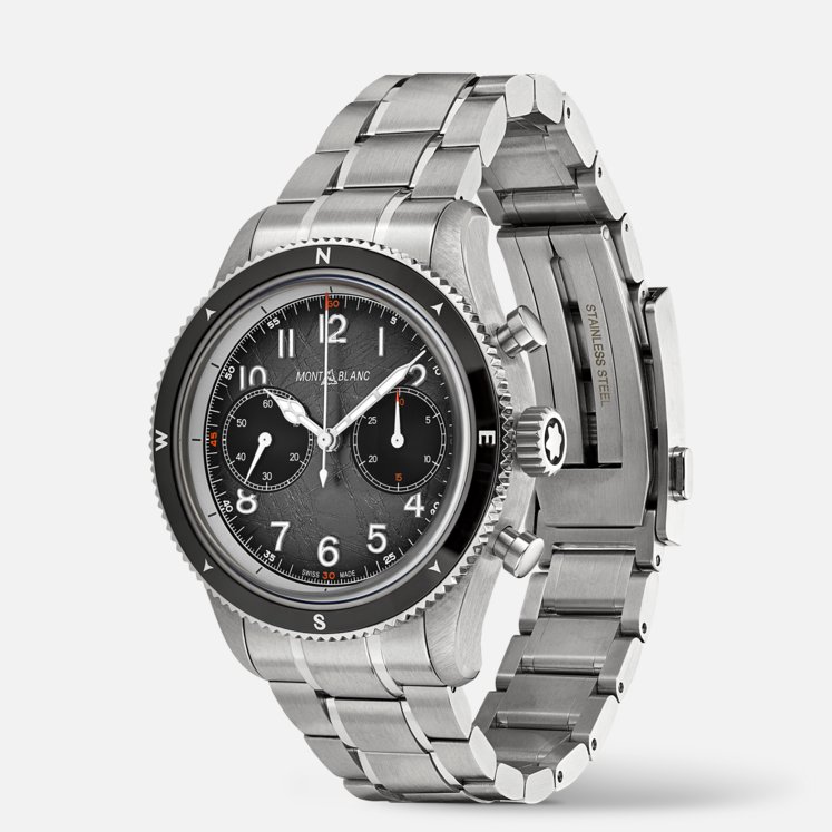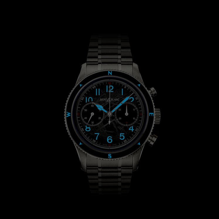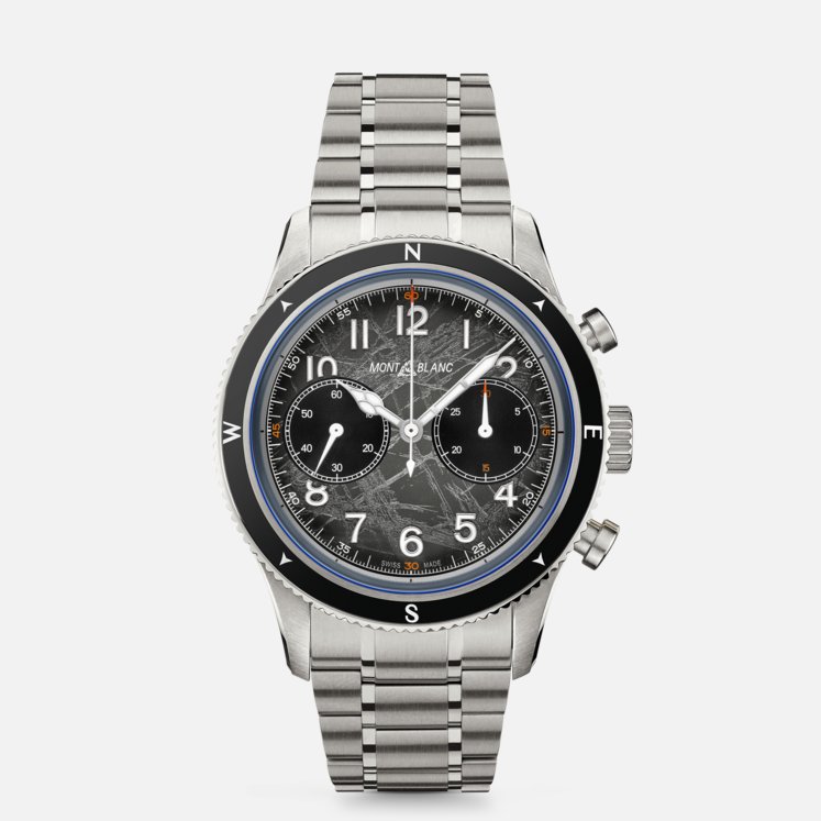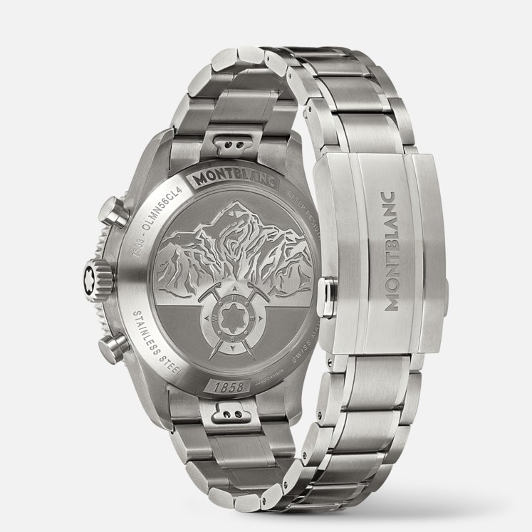 Rendendo omaggio alle vette più alte del mondo e agli alpinisti che osano scalarle resistendo a condizioni estreme, il Montblanc 1858 Automatic Chronograph 0 Oxygen The 8000 è alloggiato in una cassa in acciaio pregiato da 42 mm totalmente priva di ossigeno. Questa innovazione comporta diversi vantaggi per gli esploratori, in quanto elimina l'appannamento e previene l'ossidazione, consentendo ai componenti del movimento di durare più a lungo con una precisione ancora più accurata. Il segnatempo è animato dal movimento cronografico MB 25.13 e si caratterizza per una lunetta bidirezionale scanalata in ceramica nera con punti cardinali luminescenti, un quadrante grigio scuro sfumato con motivo “ghiacciaio” e tocchi arancioni e luminescenza blu. Il fondello reca l’incisione del motivo “Spirit of Mountain Exploration” e l'orologio è dotato di un bracciale intercambiabile in acciaio pregiato con conicità e regolazioni raffinate.