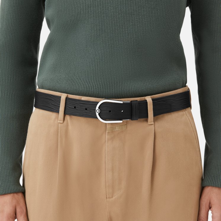 Stampata con il motivo 4810 a corteccia d’albero su un lato e in pelle nera liscia sull’altro, questa cintura reversibile da 35 mm offre il doppio dello stile. Completata da un’intramontabile fibbia a ferro di cavallo finitura palladio con l’emblema Montblanc.