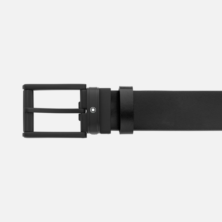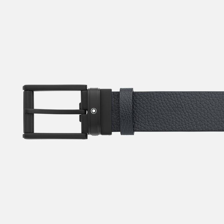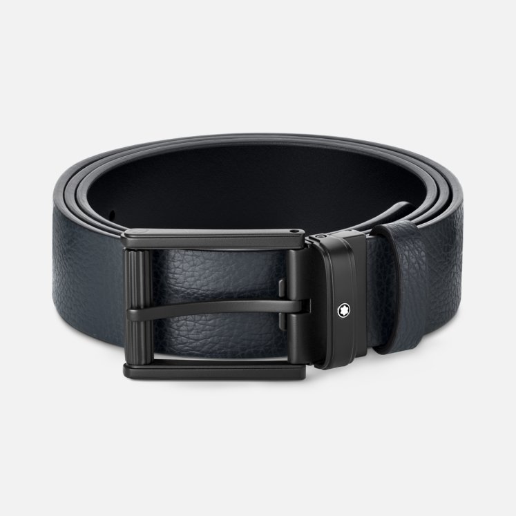 Ideale in ogni occasione, questa cintura reversibile in pelle presenta una combinazione caratteristica di colori e texture. Con un lato in pelle granulata blu e l’altro in pelle liscia nera, questa cintura da 35 mm ruota attorno a una fibbia a rullo con logo Montblanc.