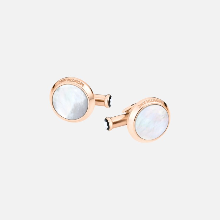 I gemelli Meisterstück celebrano uno stile atemporale. Ispirati allo strumento da scrittura Meisterstück Montblanc, la loro intramontabile forma rotonda di acciaio pregiato con finitura PVD color oro rosso e inserto in madreperla crea un gioiello dallo stile inconfondibile Montblanc.