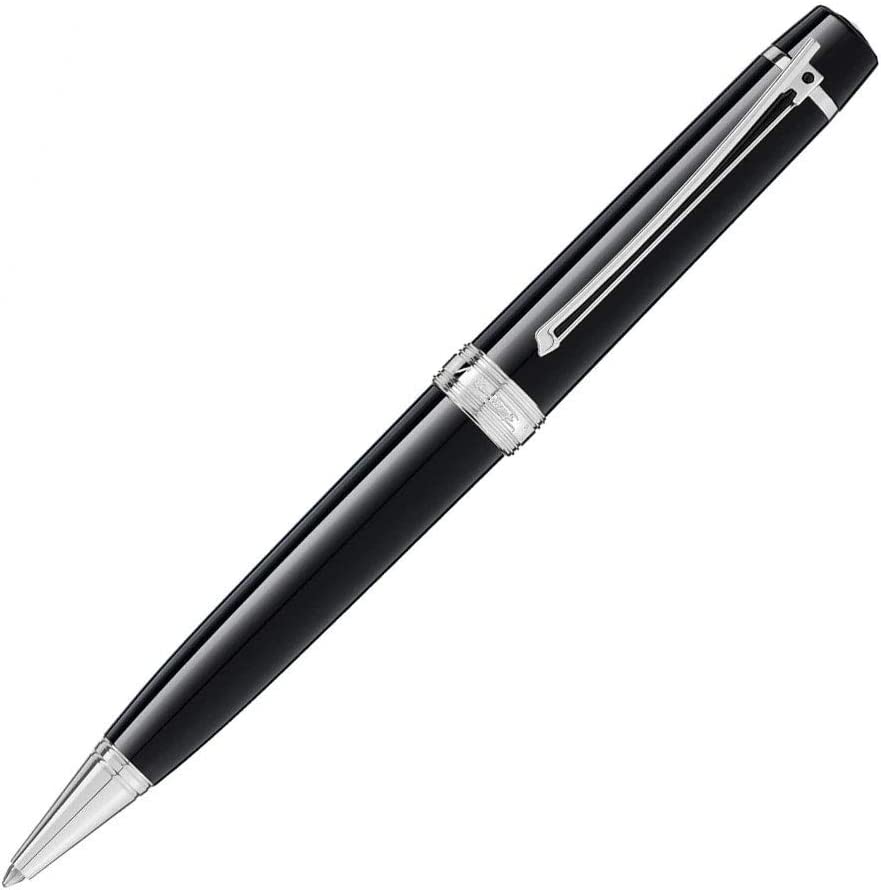 Una penna a sfera Montblanc edizione speciale della collezione donazione che rende omaggio al famoso musicista Johann Strauss. Tappo e corpo in resina preziosa nera. Clip per violino rivestita in platino. Tutte le finiture rivestite in platino e la firma di Johann Strauss incisa con scritta Montblanc.