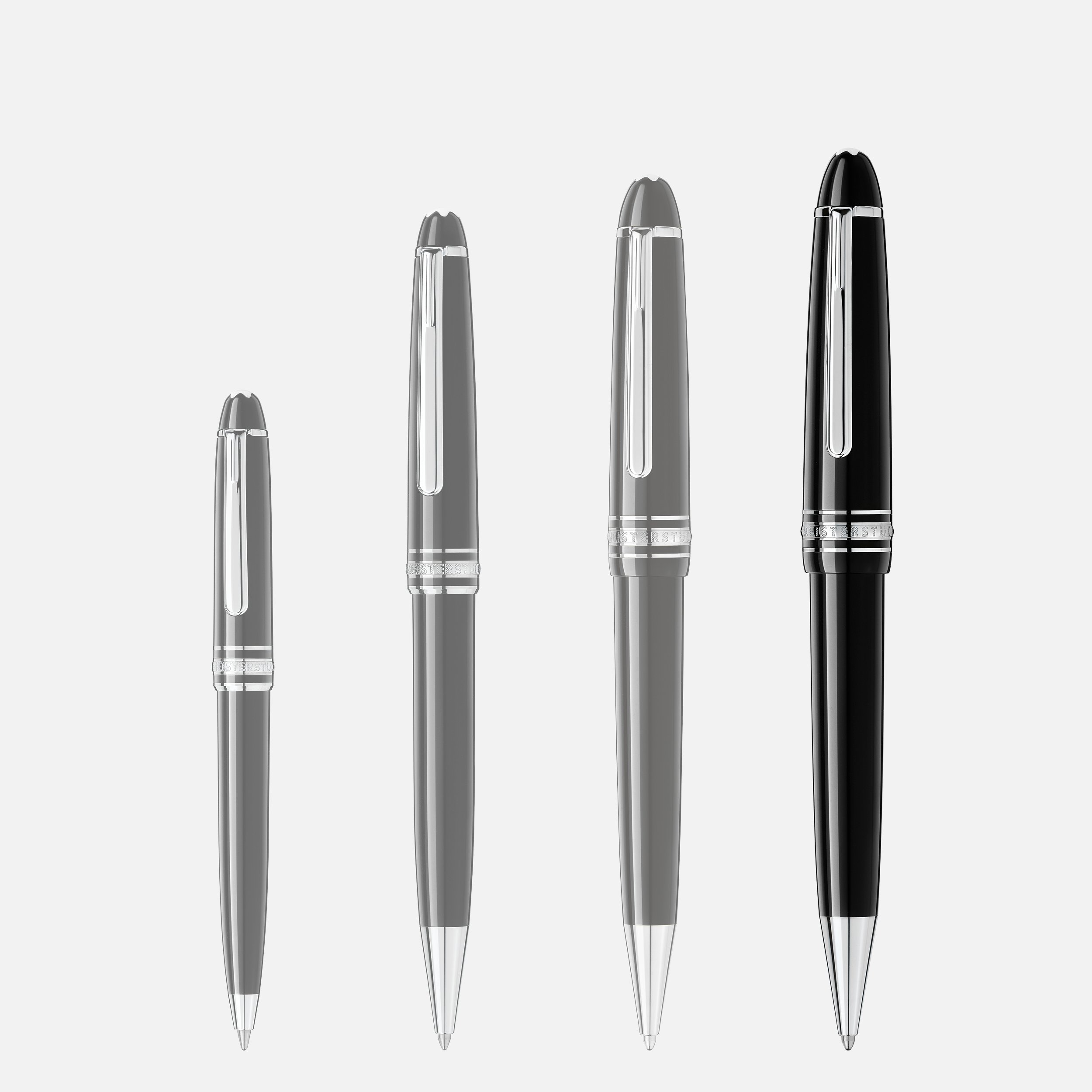 La Meisterstück LeGrand in pregiata resina nera con eleganti dettagli finitura platino, sormontati dall'emblema Montblanc a forma di stella bianca, rappresenta un'inimitabile icona di design.