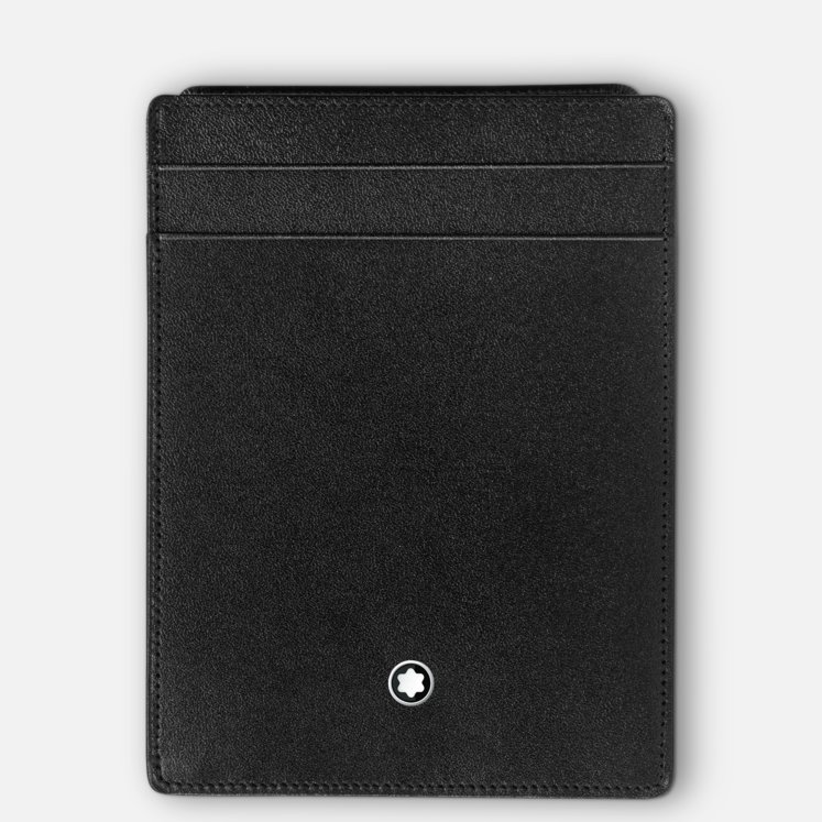 Il porta carte Meisterstück è realizzato in pelle nera con esclusivo lucido Montblanc. Piccolo ma funzionale, ha quattro aperture per carte di credito, tre tasche extra e una tasca trasparente per documento d’identità amovibile per trasportare documenti personali. Un compagno utile per la vita quotidiana.