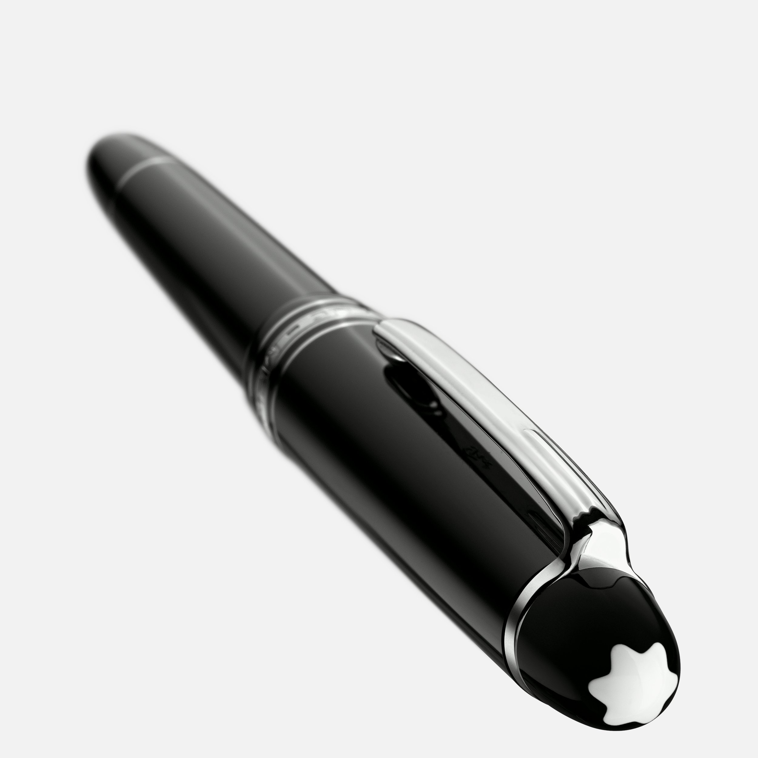 La Meisterstück LeGrand in pregiata resina nera con eleganti dettagli finitura platino, sormontati dall'emblema Montblanc a forma di stella bianca, rappresenta un'inimitabile icona di design.