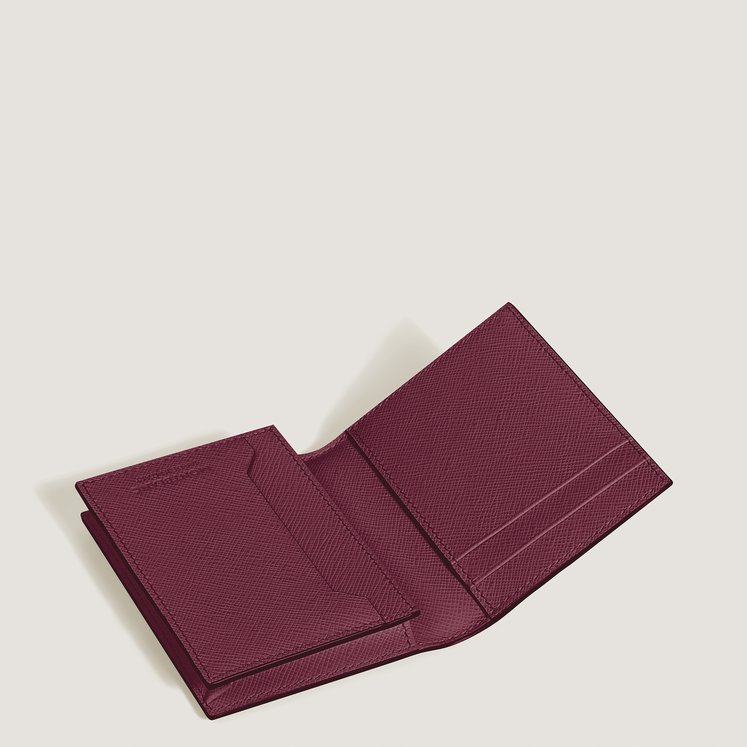 Questo porta carte compatto in pelle è un accessorio estremamente versatile che vanta dettagli funzionali sia all’interno che all’esterno. L’interno è dotato di tre aperture per carte di credito, uno scomparto per biglietti da visita e una tasca aggiuntiva. Realizzato in pelle stampa Saffiano cassis, all’esterno presenta un’apertura extra per una quarta carta di credito.