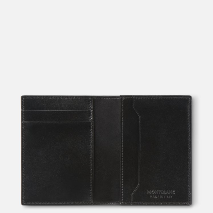 Scopri il porta carte 4 scomparti Meisterstück dalla forma compatta e senza tempo. Realizzato in pelle nera estremamente lucida, questo accessorio è sinonimo di eleganza. L’esterno presenta una pratica apertura per carte di credito, che consente di accedere facilmente alla carta usata più frequentemente. L’interno offre tre ulteriori aperture per carte di credito e uno scomparto dedicato per biglietti da visita. Il porta carte presenta anche una tasca extra, che consente di riporre in modo versatile ricevute o altri oggetti essenziali. Nonostante il design piccolo e compatto, offre ampio spazio per avere sempre tutto l’essenziale a portata di mano.