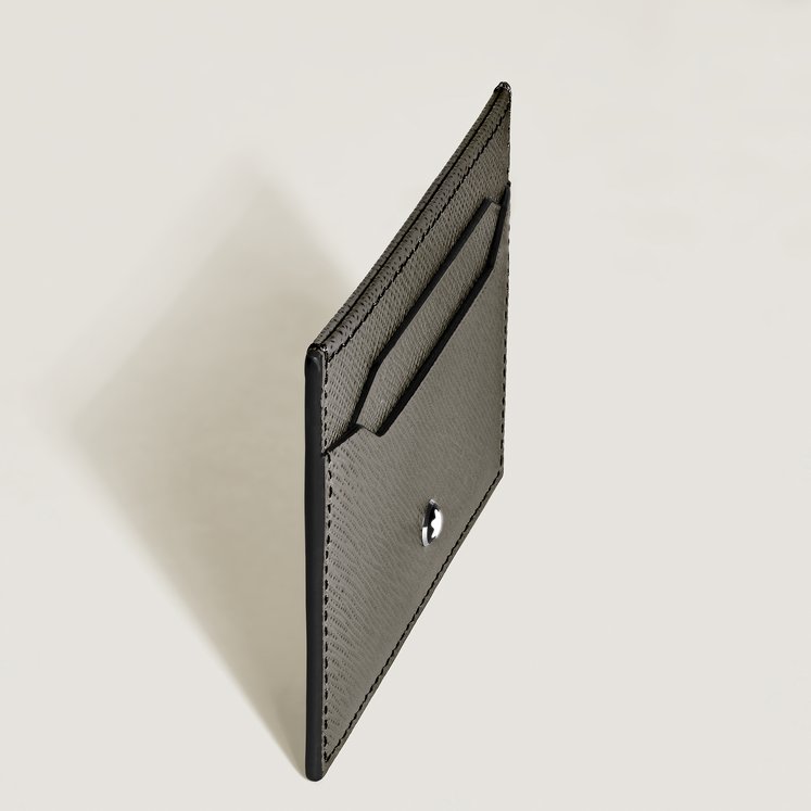 Questo porta carte in pregiata pelle stampa Saffiano grigio medio è un accessorio elegante per la vita di tutti i giorni. Il modello può contenere fino a cinque carte di credito per portare sempre con sé tutto l’essenziale. Il lato anteriore è impreziosito dall’emblema Montblanc.