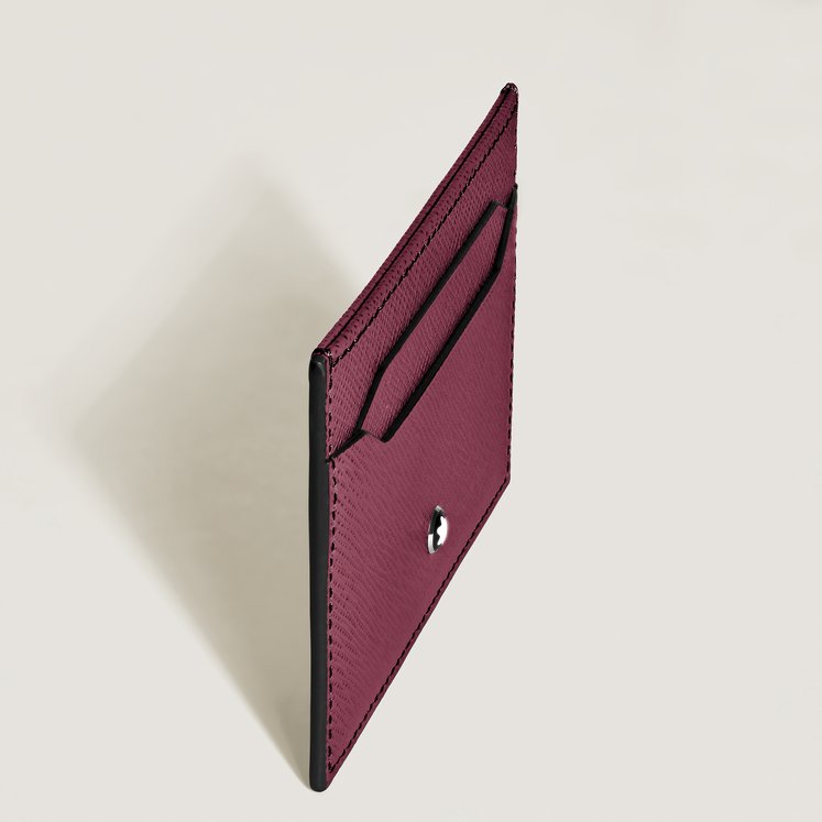 Questo porta carte in pregiata pelle stampa Saffiano cassis è un accessorio elegante per la vita di tutti i giorni. Il modello può contenere fino a cinque carte di credito per portare sempre con sé tutto l’essenziale. Il lato anteriore è impreziosito dall’emblema Montblanc.