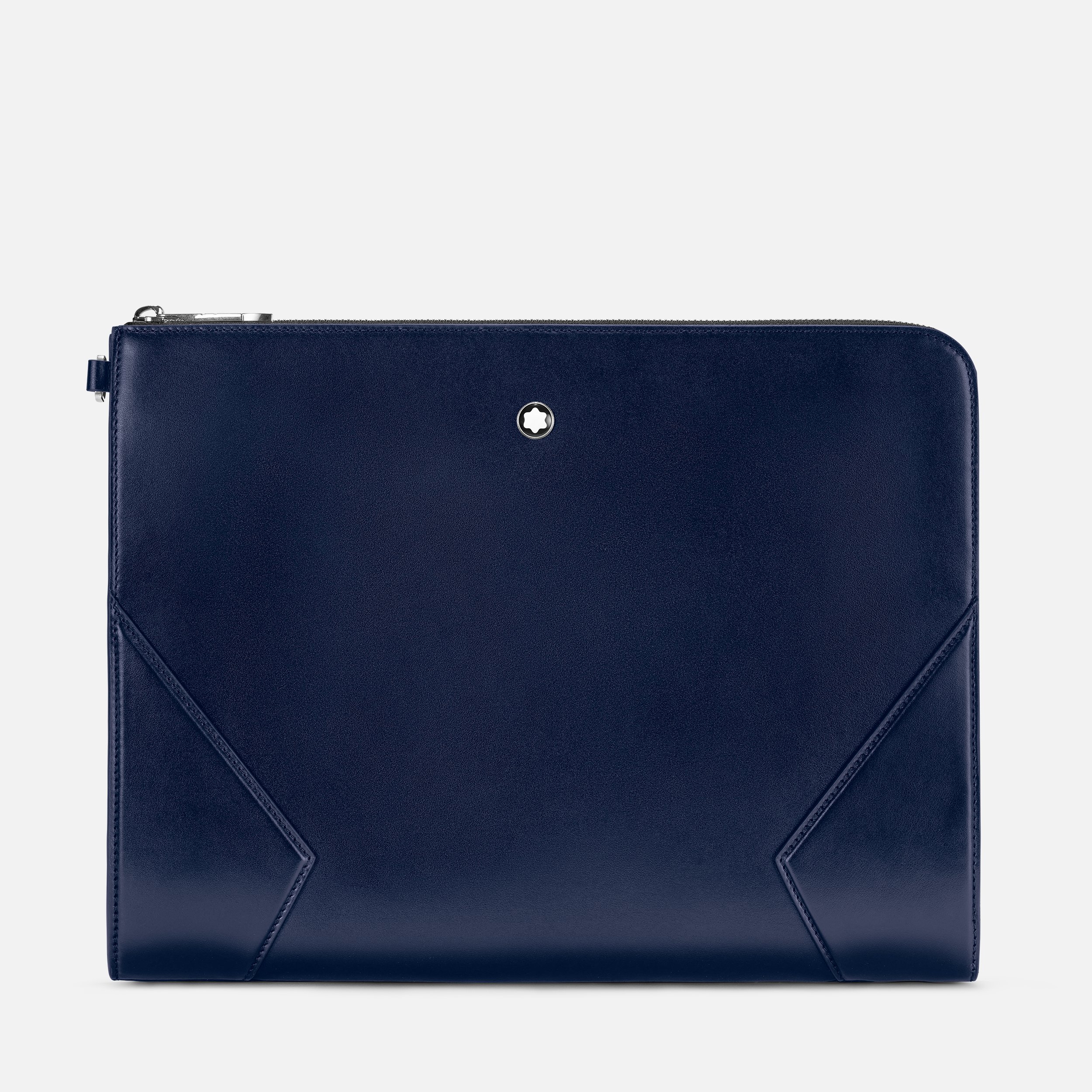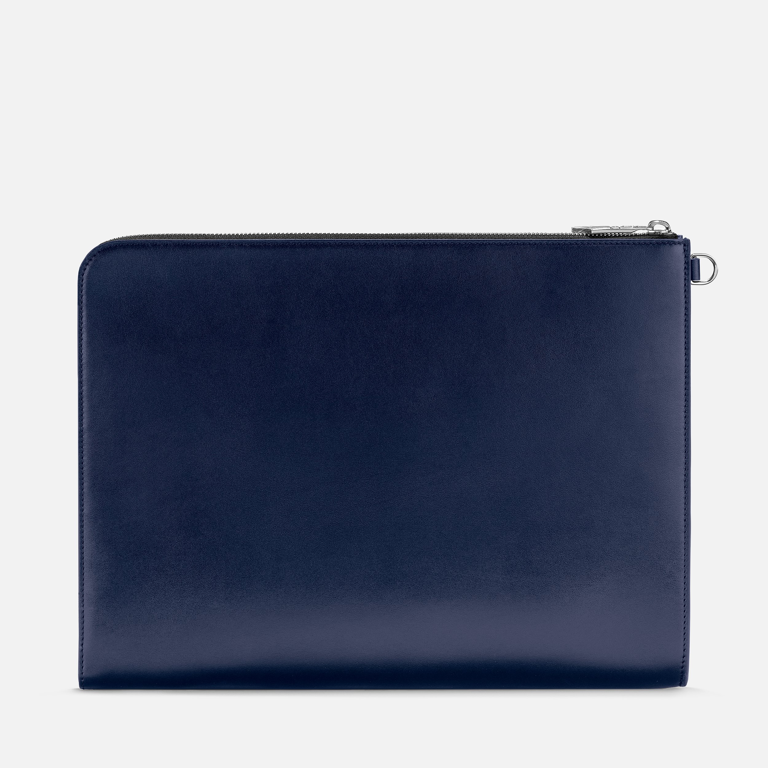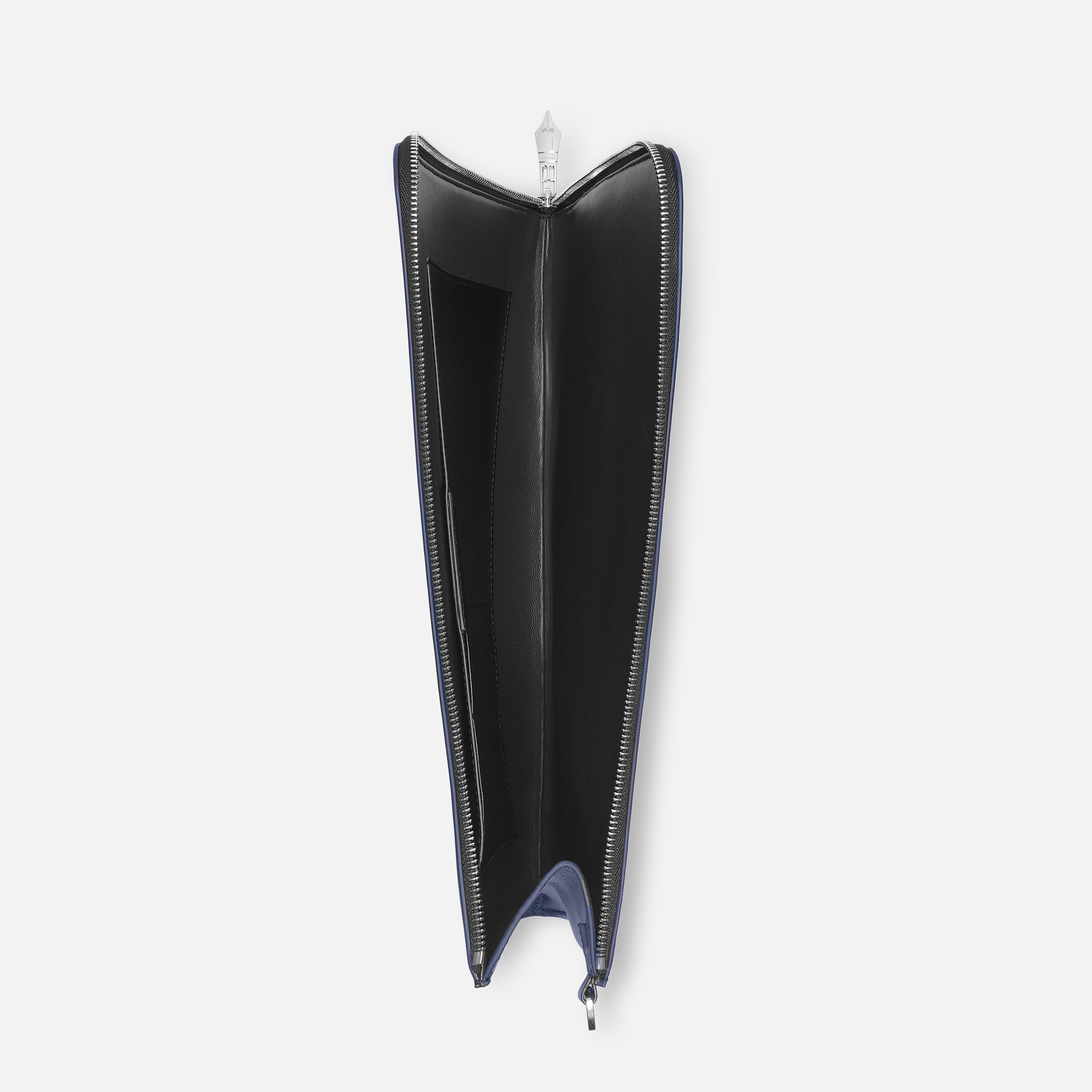 Ispirato all’arte della scrittura, il portadocumenti Meisterstück è il compagno ideale per gli impegni di tutti i giorni. Realizzato in una nuova tipologia di pelle estremamente lucida nel colore Ink Blue, presenta impunture e cursore della cerniera che richiamano la forma di un pennino, la vera essenza di Montblanc. Una versione più grande del logo impreziosisce la borsa.