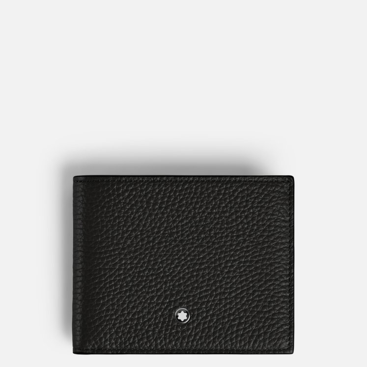 Sottile e sofisticato, questo classico portafoglio bi-fold in pelle premium a grana nera è una scelta elegante per il quotidiano. Dal design curato, offre sei aperture per carte di credito, due scomparti per banconote e due tasche aggiuntive per ricevute. Foderato in tessuto nero e impreziosito dall’iconico emblema Montblanc, combina praticità e stile intramontabile.