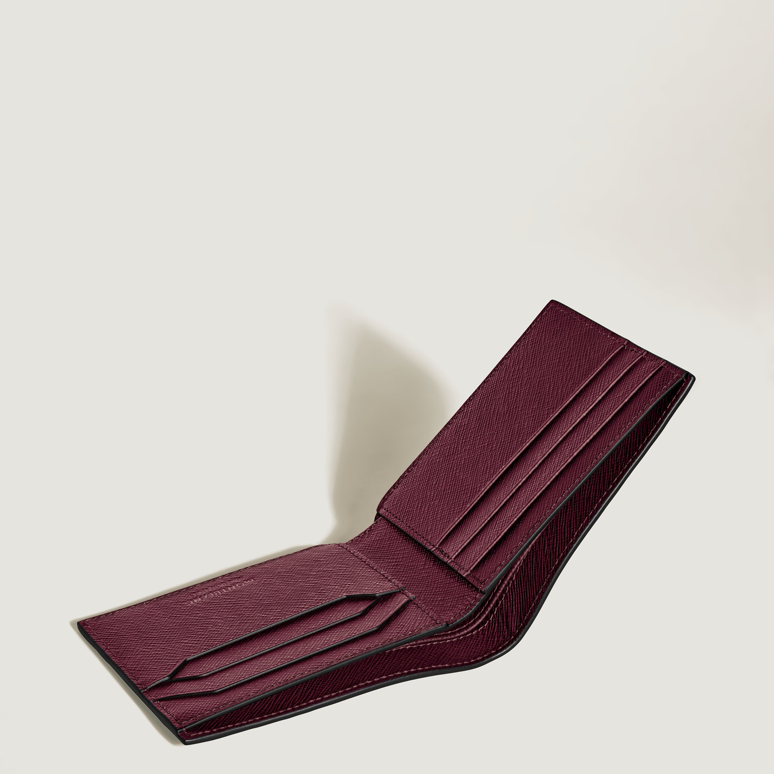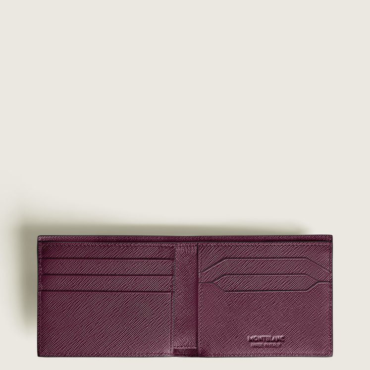 Un must-have da portare sempre con sé in tasca. Questo portafoglio in pelle stampa Saffiano cassis è dotato di sei aperture per carte di credito. Il modello è completato da due scomparti per banconote e due tasche aggiuntive per piccoli oggetti.
