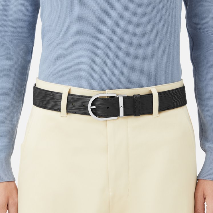 Realizzata in pelle di alta qualità, questa cintura nera da 40 mm presenta una stampa con motivo a corteccia d’albero su tutta la lunghezza e una fodera a contrasto. La fibbia a ferro di cavallo offre un tocco di classe a questo modello audace e consente una facile regolazione della vestibilità.
