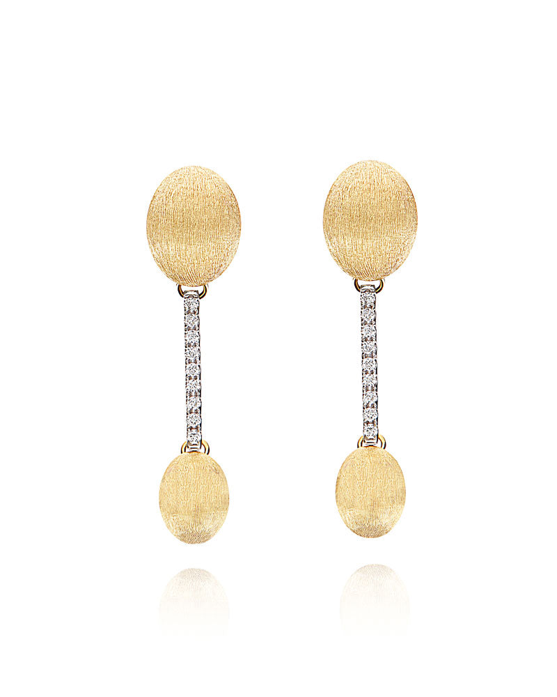 La delicatezza dell'eleganza incontra il talento di questi orecchini scintillanti che sposano i diamanti a due boules in oro 18 kt, incise a mano dai nostri artigiani. Laura, che testa ogni sua creazione, ha poi ideato per questi orecchini delle speciali farfalline dotate di una lamella pensata per sostenere la parte superiore dell’orecchino, garantendone una perfetta vestibilità.
