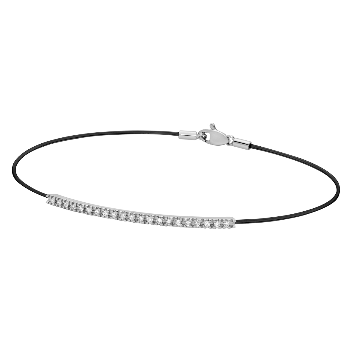 Il fascino eterno dei diamanti incontra l’essenza minimale e delicata del nylon nero dando vita ad un un bracciale in oro bianco e diamanti dallo stile unico che cela dietro semplicità e raffinatezza l’infinita bellezza di un gioiello dal fascino etereo, abbinato al ritmo incalzante del gioco del padel.