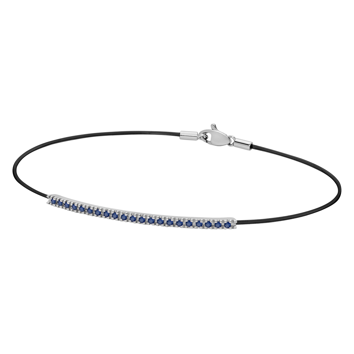 Il fascino eterno dei diamanti incontra l’essenza minimale e delicata del nylon nero dando vita ad un un bracciale in oro bianco e zaffiri dallo stile unico che cela dietro semplicità e raffinatezza l’infinita bellezza di un gioiello dal fascino etereo, abbinato al ritmo incalzante del gioco del padel.