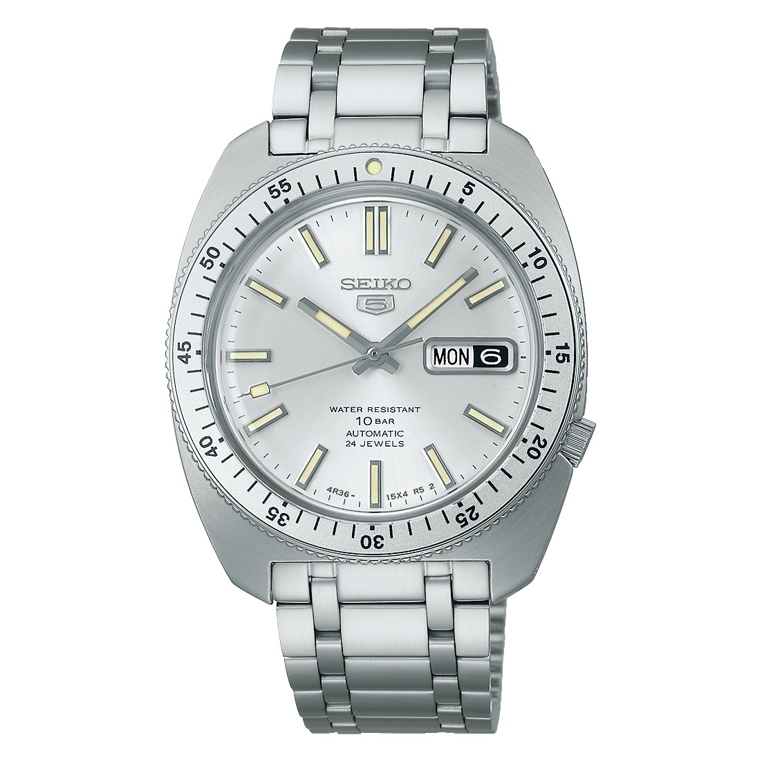 Il quadrante riprende il design dell'originale, con il marchio vintage “5” nella posizione delle ore 12.