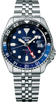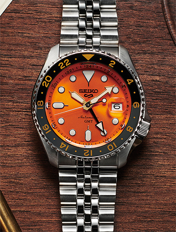 Le tre le nuove proposte offrono un quadrante con un colore diverso; nero, blu e arancione. Per fare in modo che risaltino chiaramente, le lancette GMT sono in rosso brillante sulle versioni con quadrante nero e blu e in nero per la versione arancione. Proprio come le lancette e gli indici dell'ora, la lancetta GMT ha un generoso strato di Lumibrite per garantire la leggibilità in condizioni di scarsa illuminazione. Oltre alla comodità internazionale della funzione GMT, gli orologi dispongono anche di una lunetta girevole in due colori per separare a colpo d'occhio le ore notturne e diurne. L'indicatore ad anello della lunetta è realizzato in vetro Hardlex di Seiko per offrire l'alto livello di durata per cui è rinomata la collezione Seiko 5 Sports.